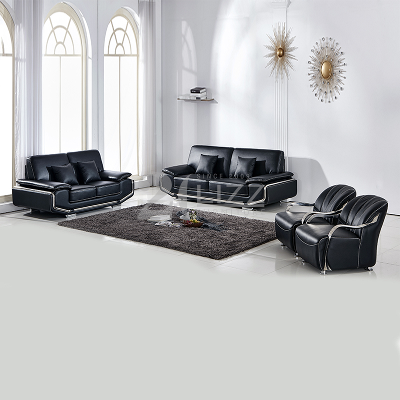 Meubles de maison Canapé en cuir noir Ensemble pour salon